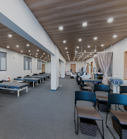 効果的なリハビリのためには、患者様お一人お一人に合った方法を選択することが必要です。当院では100平米以上のリハビリ室に様々な機器を用意しております。